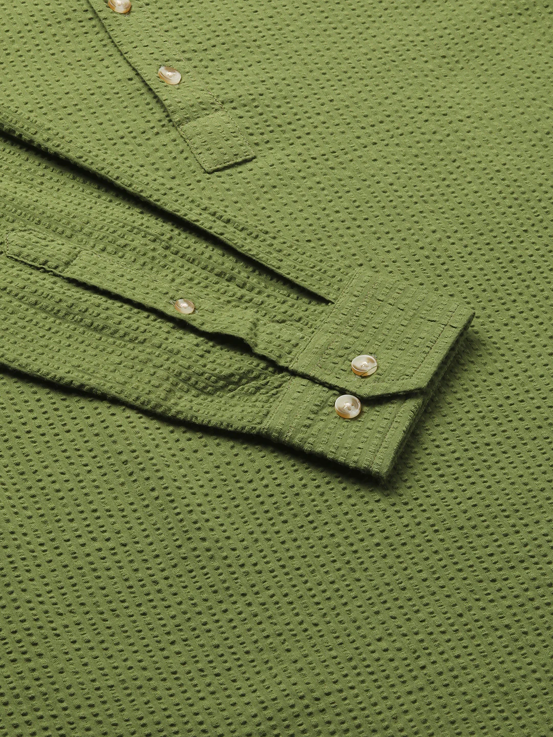 Turn heads with our Basil Green Seersucker Kurta! Unique, elegant, and crafted for a bold yet sophisticated style statement.