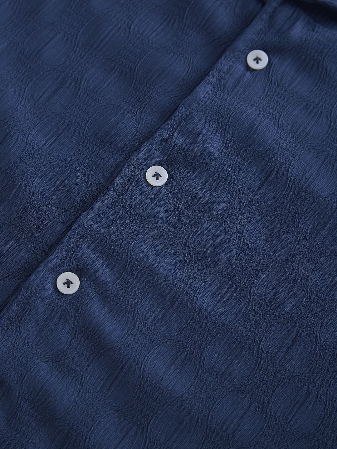 Step up your style game with this blue crepe half-sleeve shirt, featuring a bold textured design. Made from soft, breathable polyester, this shirt offers a perfect blend of comfort and sophistication. The rich blue hue paired with the unique texture creates a distinct look that's ideal for both casual and semi-formal settings. Versatile and stylish, it's a must-have addition to any modern wardrobe.