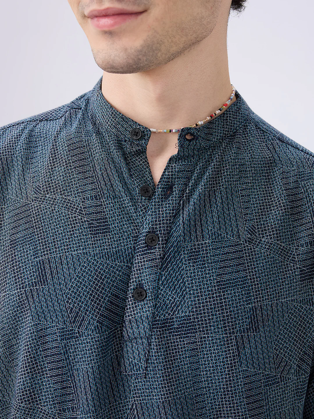 A timeless Classic Blue Web Printed Kurta featuring an elegant all-over web print that blends traditional charm with contemporary style. Crafted from breathable fabric for everyday comfort, it’s perfect for casual outings, festive occasions, or workwear. Pair it with our trousers for a chic, effortless look.