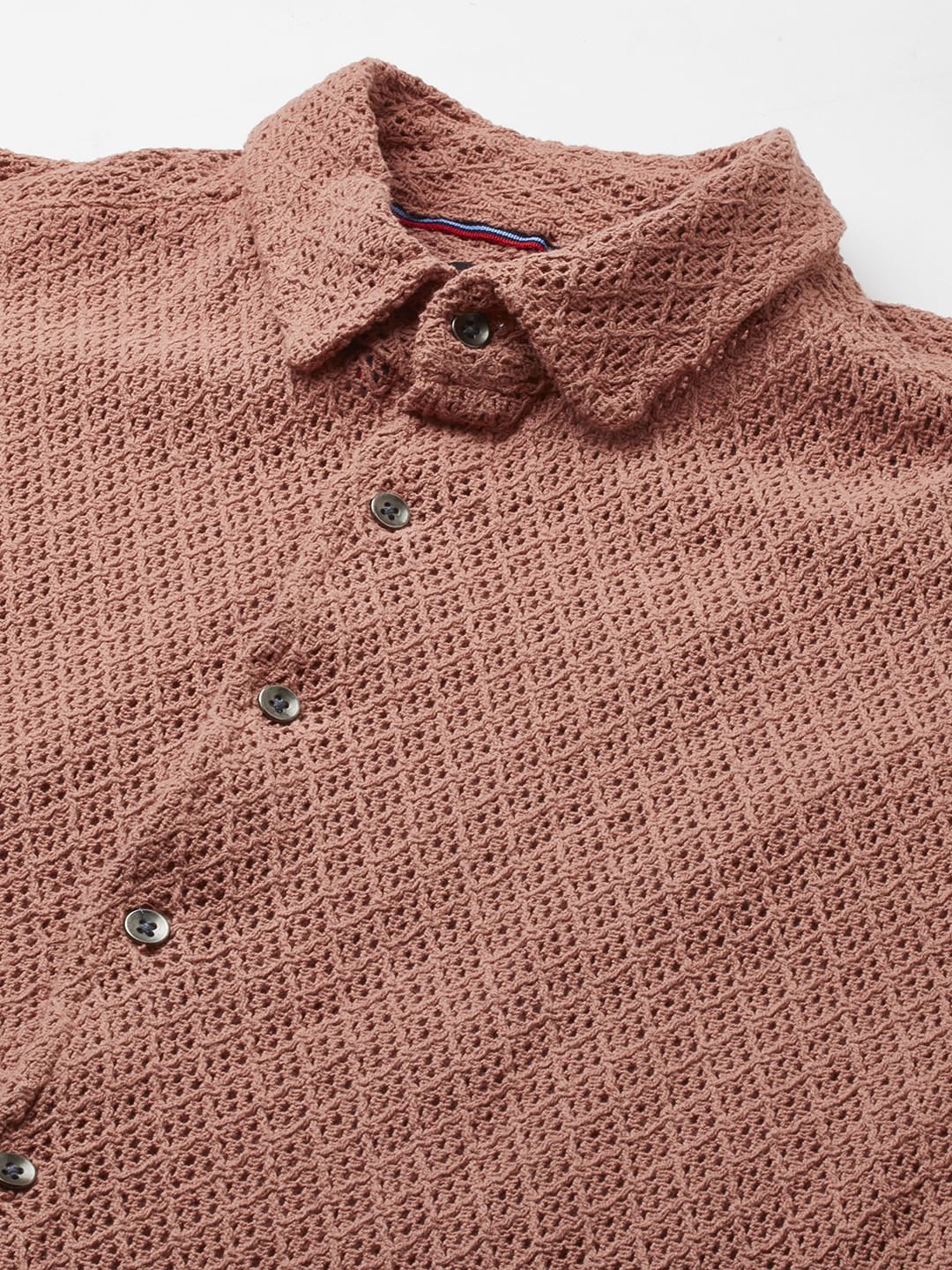 Add a pop of colour to your casual wardrobe with our Classic Coral Crochet Cropped Shirt. Featuring full sleeves and airy texture, it’s a go-to for relaxed days. Pair with denim shorts or light chinos and slip-on sneakers for an effortlessly cool vibe!