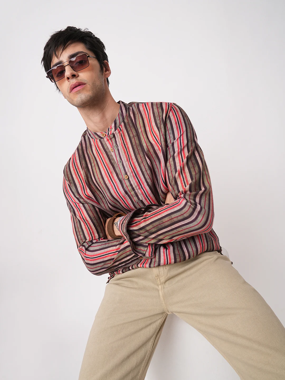 Make a bold yet elegant style statement with our Multicolour Striped Kurta. Designed for the modern wardrobe, this kurta features a vibrant array of stripes in eye-catching hues, offering a perfect blend of tradition and contemporary flair. Crafted from breathable, high-quality fabric, it ensures all-day comfort while keeping you effortlessly stylish. The sleek straight cut, classic neckline, and full-length sleeves make it ideal for both casual outings and festive occasions. Pair it with solid trousers or jeans for a versatile, polished look.