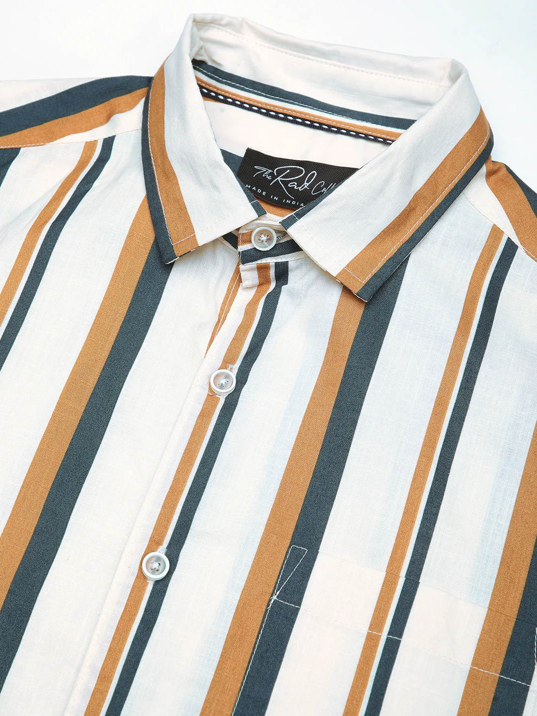 VASTRADO presents its Multicolor Striped Shirt, designed for modern fashionable men who want to make a statement in casual outfits. Made with 100% cotton, this slim-fit shirt offers both style and comfort, letting you confidently pull off a casually chic look without sacrificing comfort. Its beauty lies in the little details like full sleeves, a unique stripe pattern, and excellent stitching. Upgrade your wardrobe with this easy-to-wear, versatile shirt that pairs perfectly with jeans or trousers.