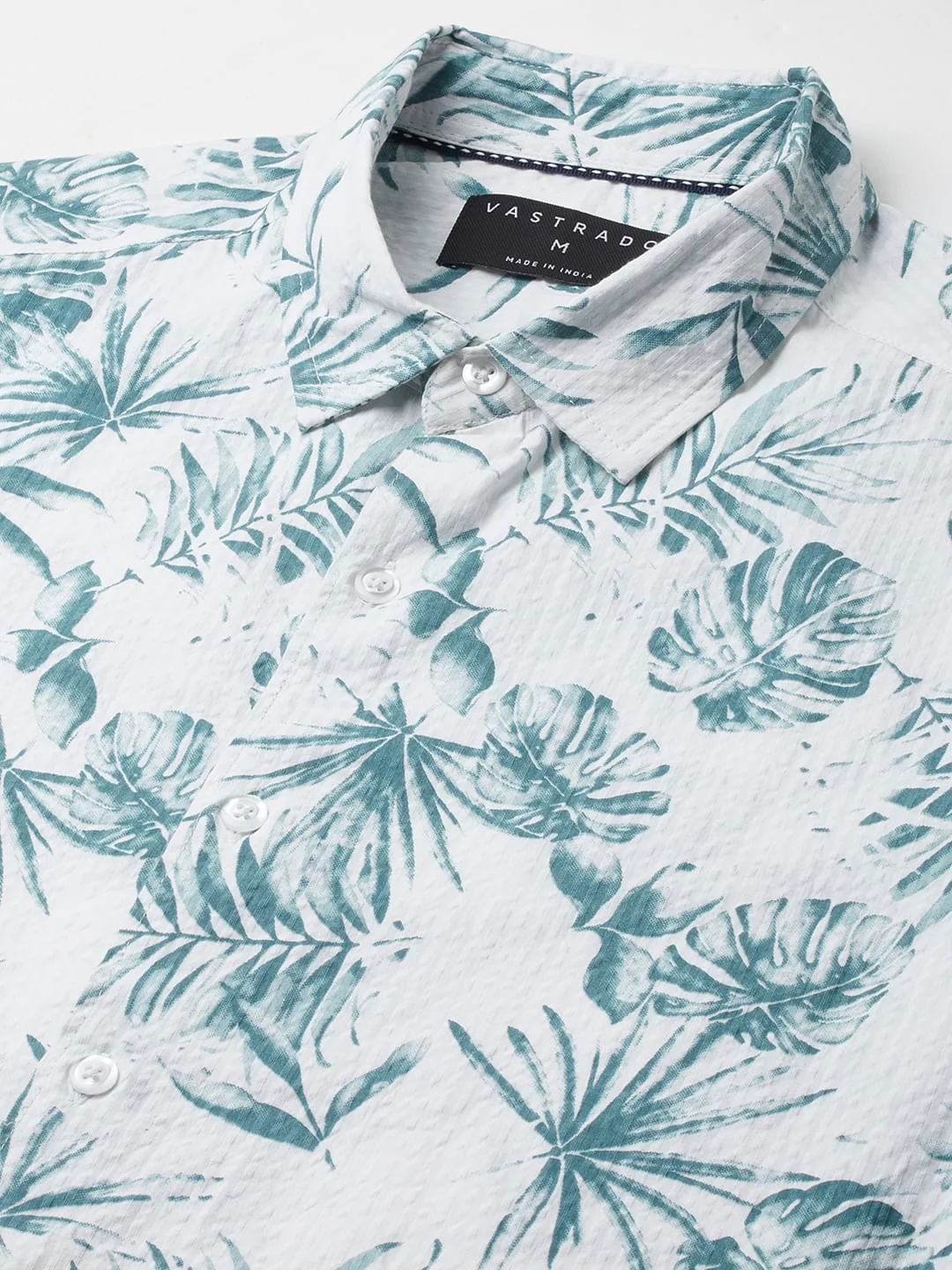 Exquisite White Hawaiian Printed Seersucker Shirt
