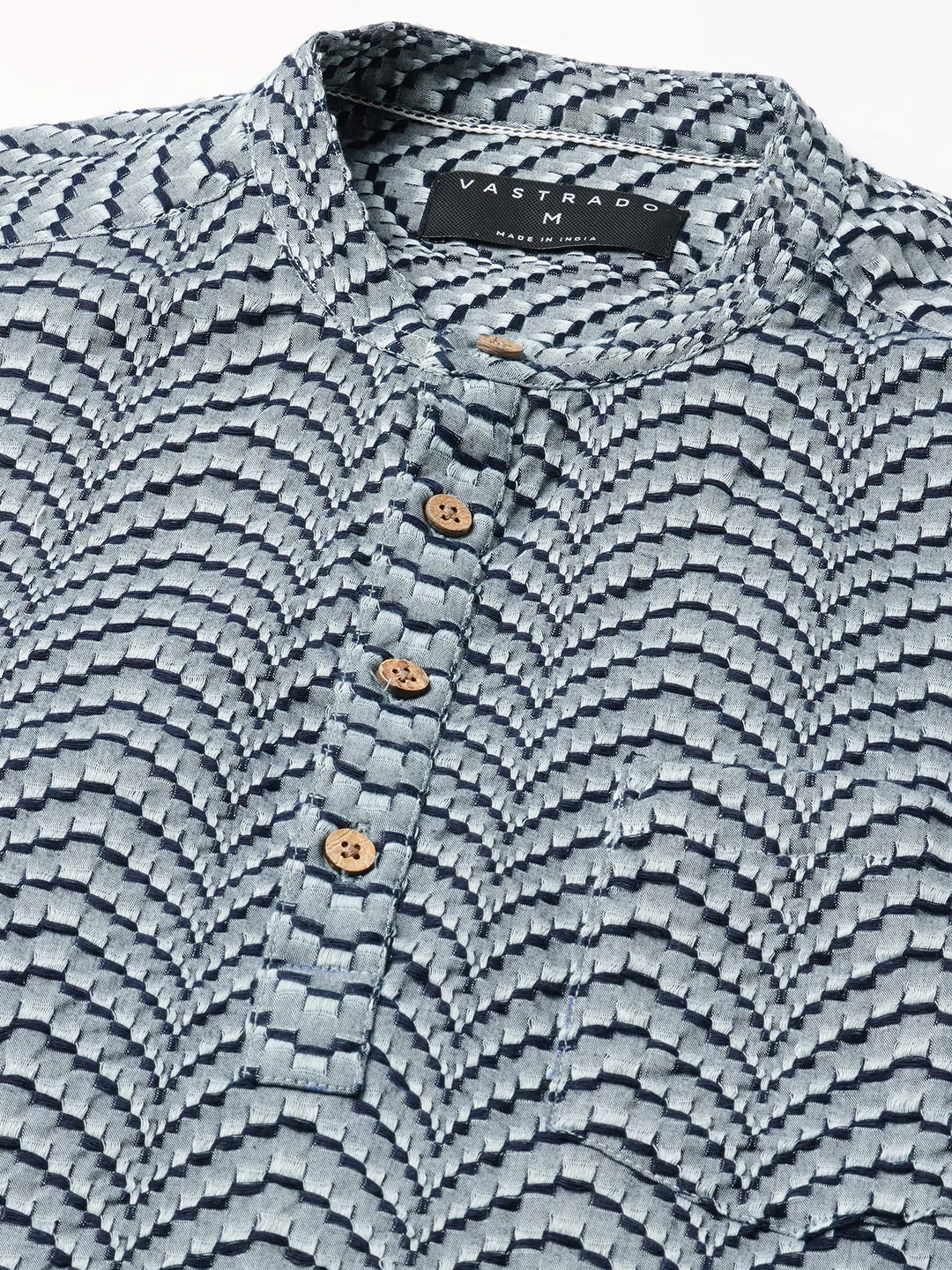 Grey & Navy Jacquard Weaved Kurta
