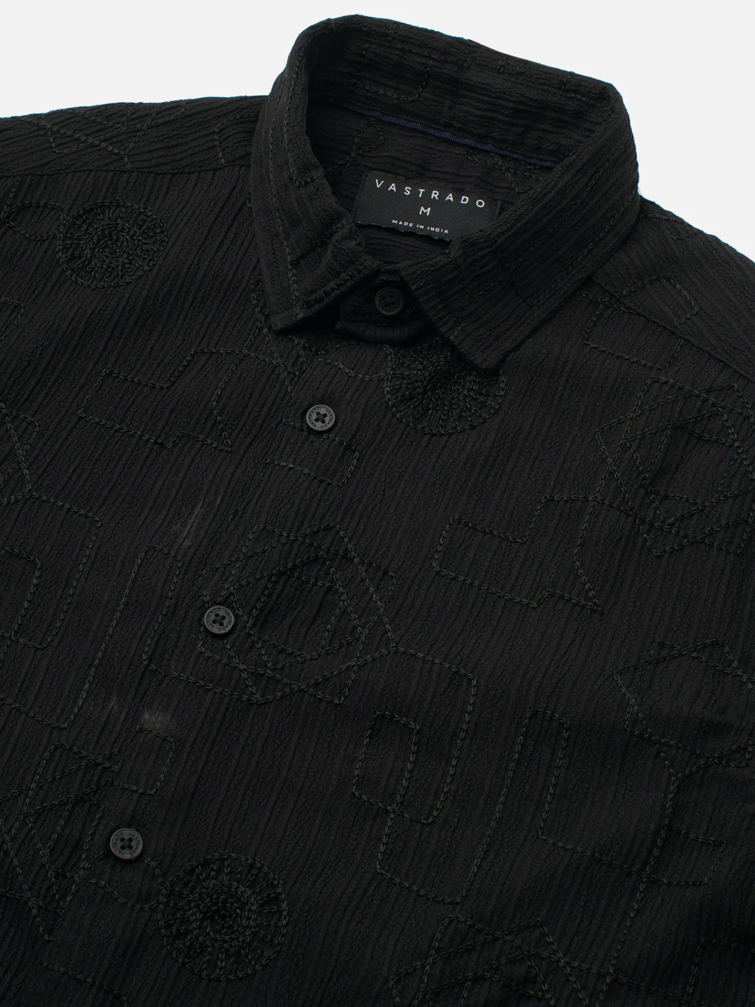 Intricate Black Embroidered Textured Shirt