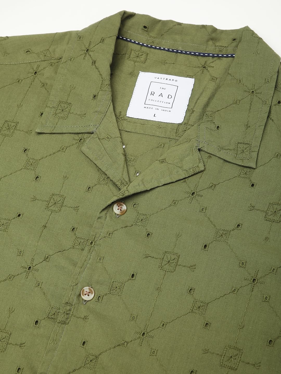Intricate Olive Geometric Embroidered Oversized Shirt