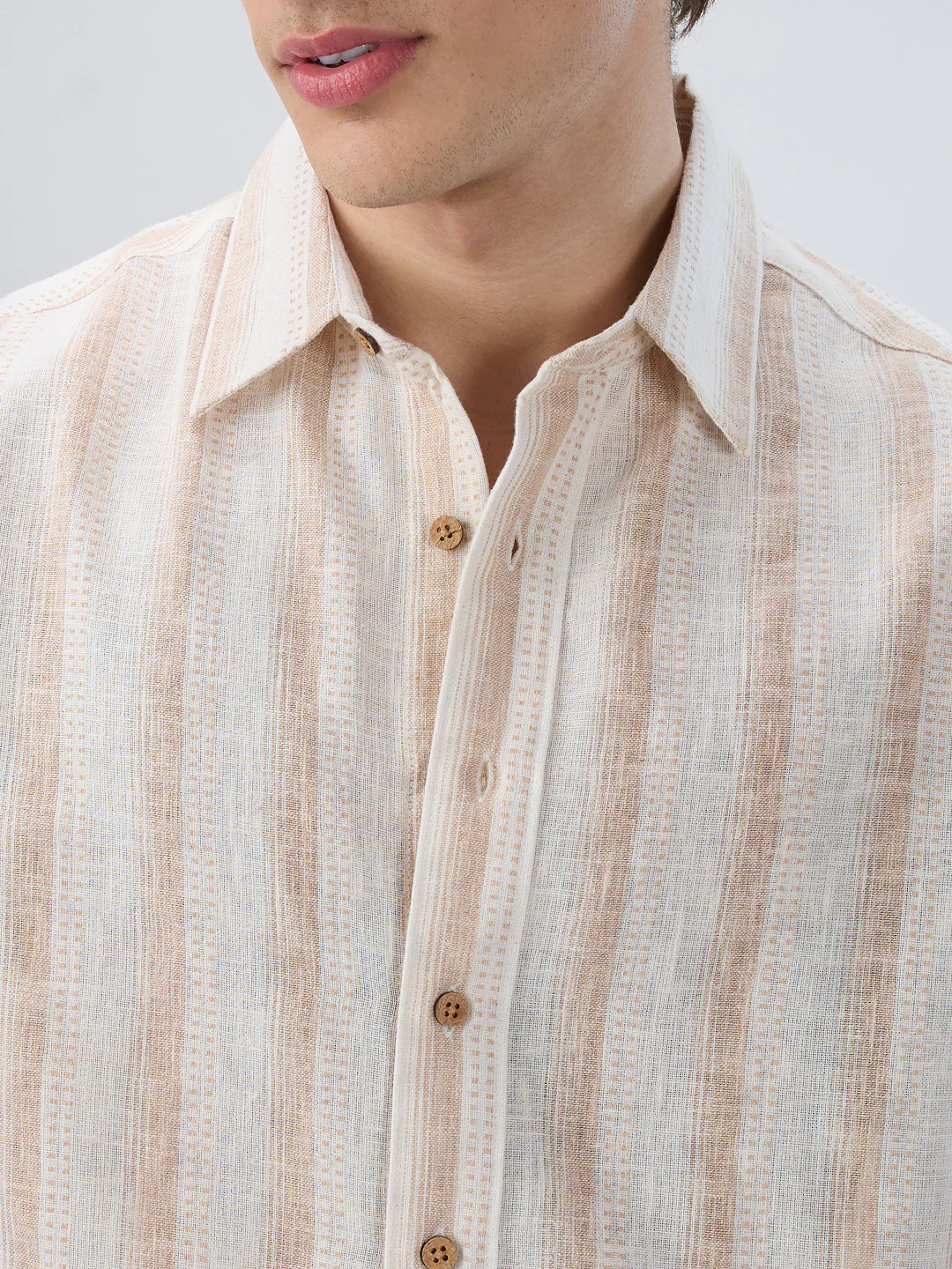 Keep it effortlessly refined with this Ivory & Beige Burlap Striped Shirt. Made from a textured burlap-inspired fabric, this shirt showcases subtle ivory and beige stripes that bring a natural, earthy charm to your wardrobe. The breathable construction ensures all-day comfort, while the clean, minimal design makes it easy to style. Perfect for casual days, travel, or smart-casual occasions, this versatile shirt pairs seamlessly with chinos, trousers, or denim for a relaxed yet polished look.