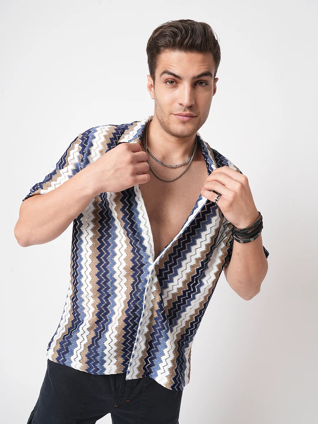 Feel the delight of this Crochet Oversized Shirt by VASTRADO. Its soft fabric and distinctive pattern give it a casual yet fashionable look. This multicolour shirt is fantastic for a smart-casual event or an easy-going day out.