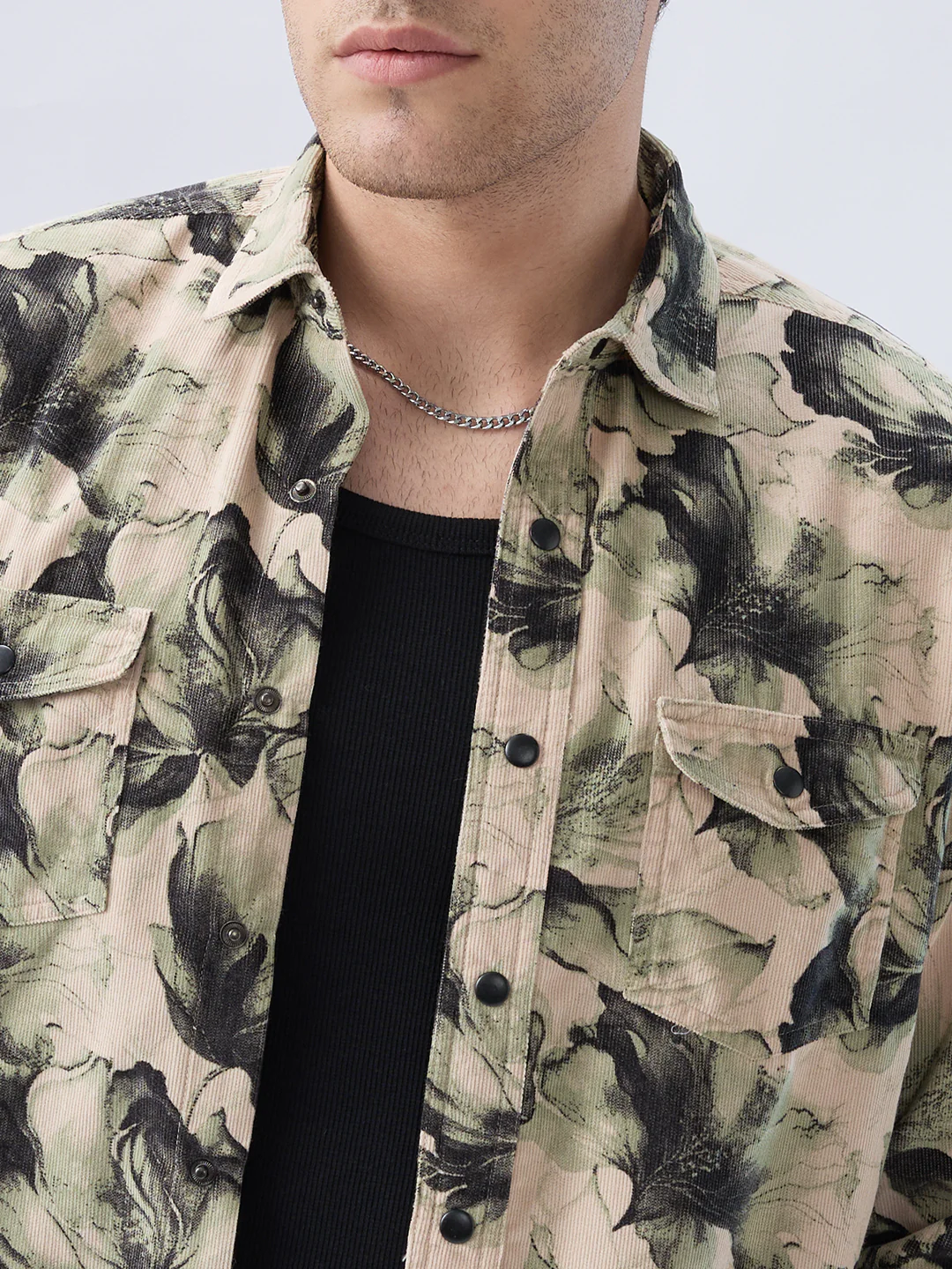 Bring a touch of nature to your wardrobe with this Nature Inspired Abstract Printed Double Pocket Corduroy Shirt. Made from soft, durable corduroy, it features a unique abstract print and functional double pockets for added style and practicality. Perfect for casual wear or layering, this shirt combines artistic flair with everyday comfort.