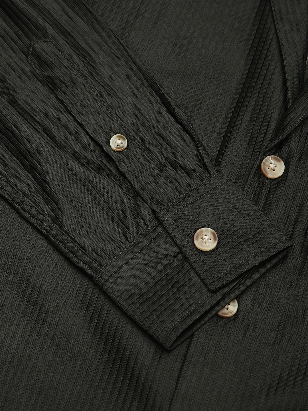 Pine Green Ribbed Oversized Notched Lapel Collar Shirt