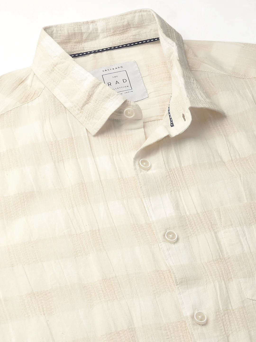 Premium Cotton Ivory Broad Checked Crepe Shirt