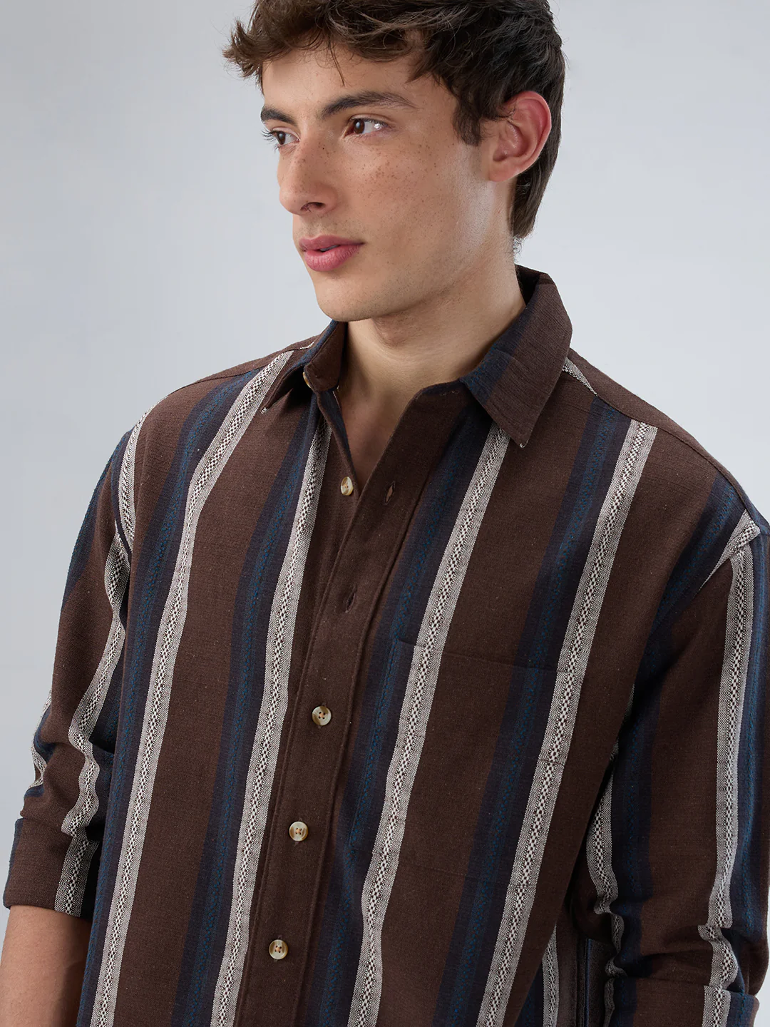 Refined Brown Multi-Tone Striped Boxy Fit Crop Shirt
